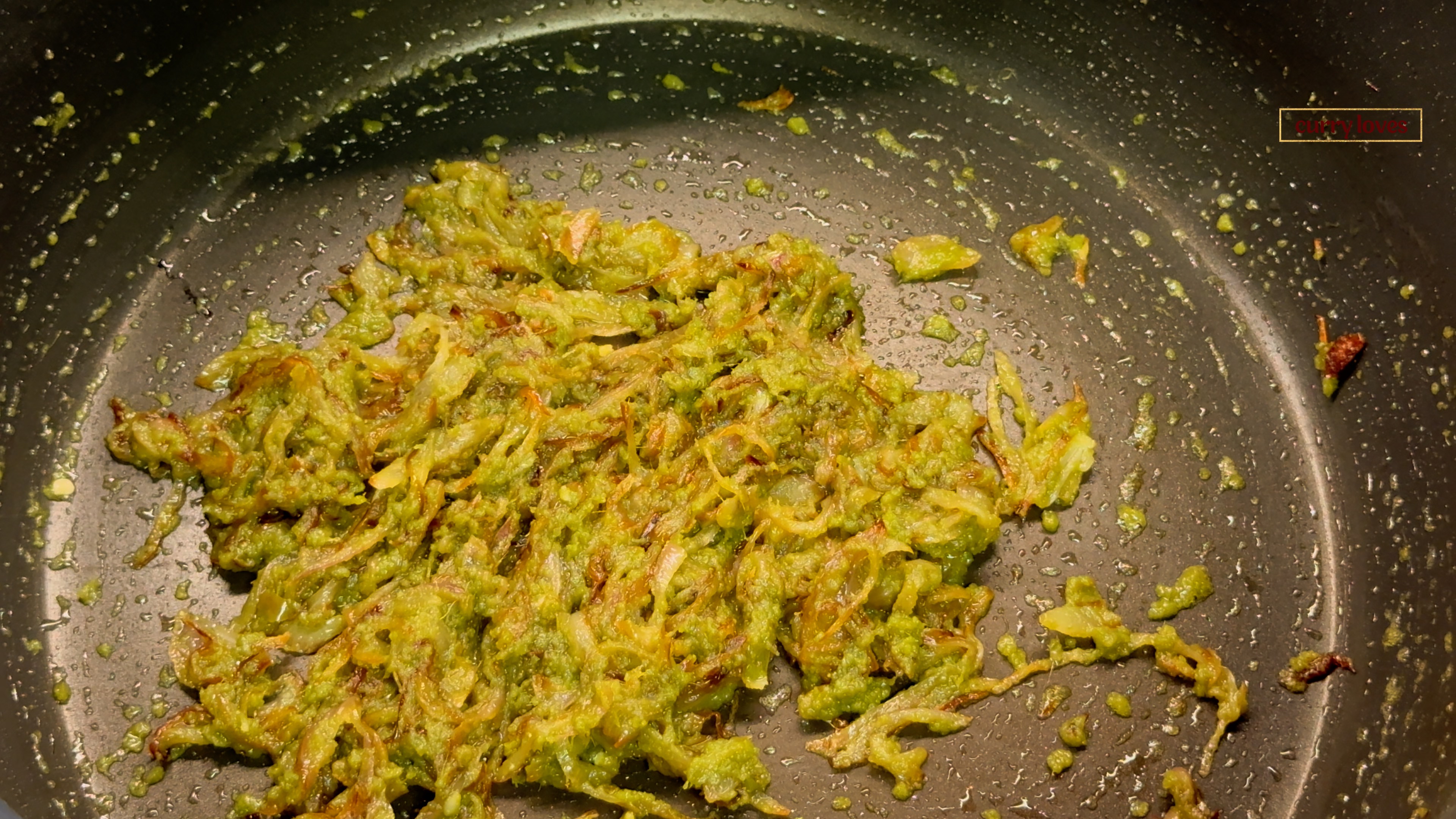 - Add the green chilli, garlic, and ginger paste. Sauté on low flame for 6-7 minutes until the raw smell disappears.
