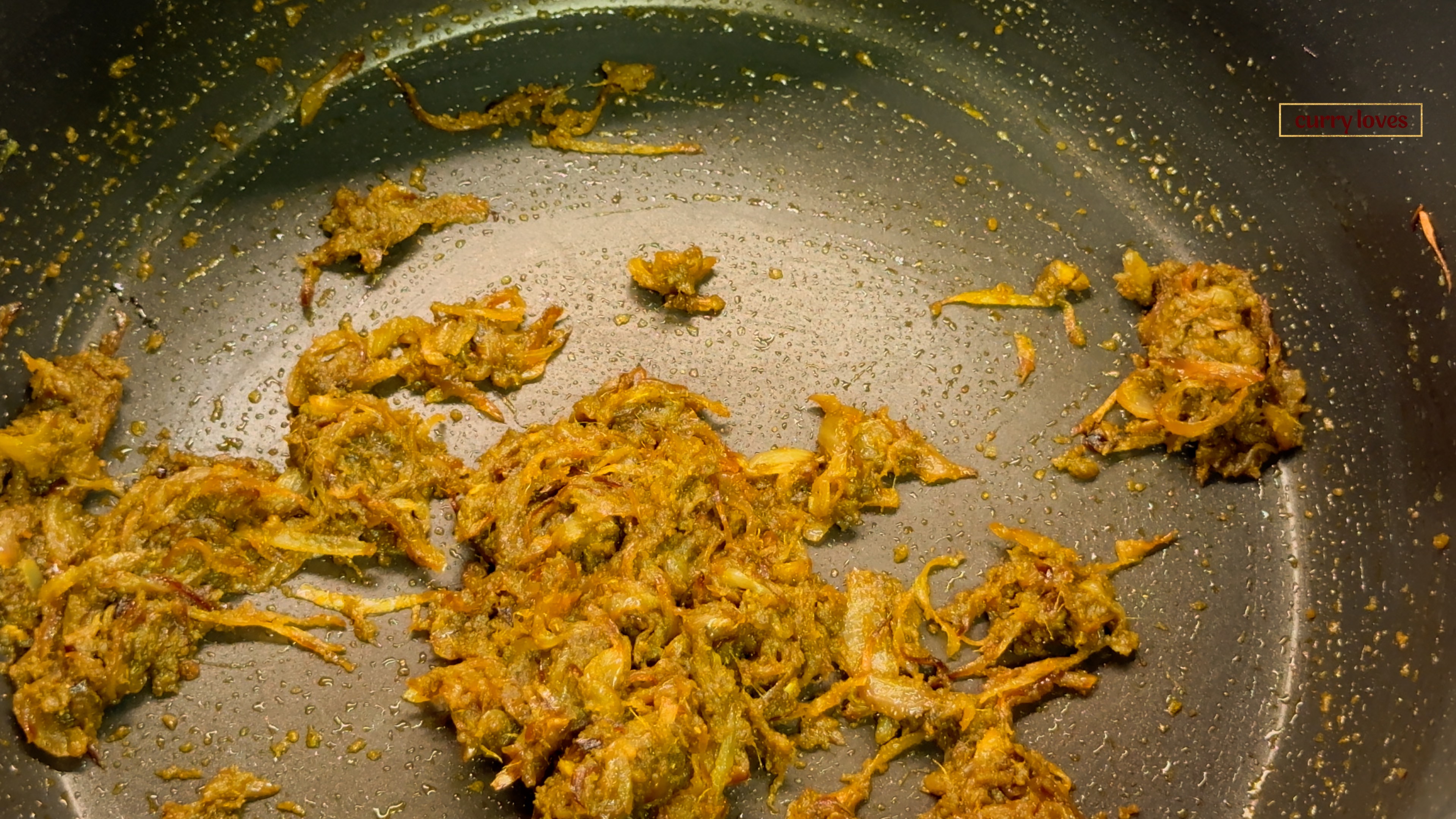 - Add the sliced onions and fry until they turn golden brown and caramelised, stirring occasionally to prevent burning. This step is crucial as the fried onions, also known as birista, will add a rich flavour and texture to the biryani.