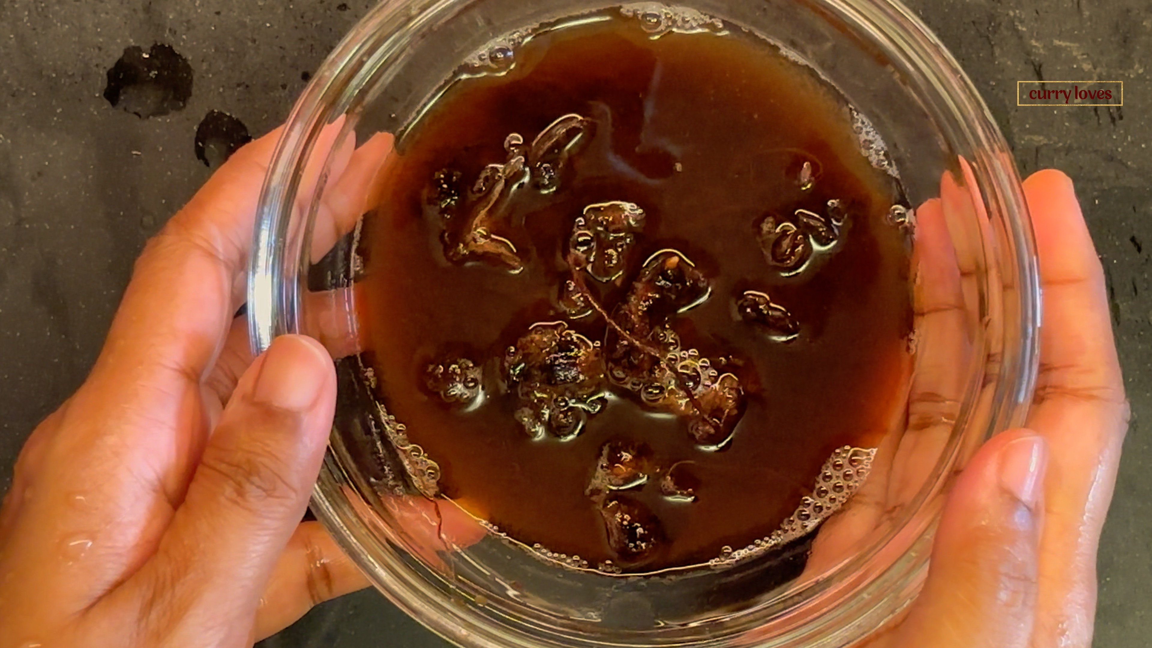 Add in the extracted tamarind water and the sugar. Give a mix. Cover and cook on low flame for another 3 minutes.