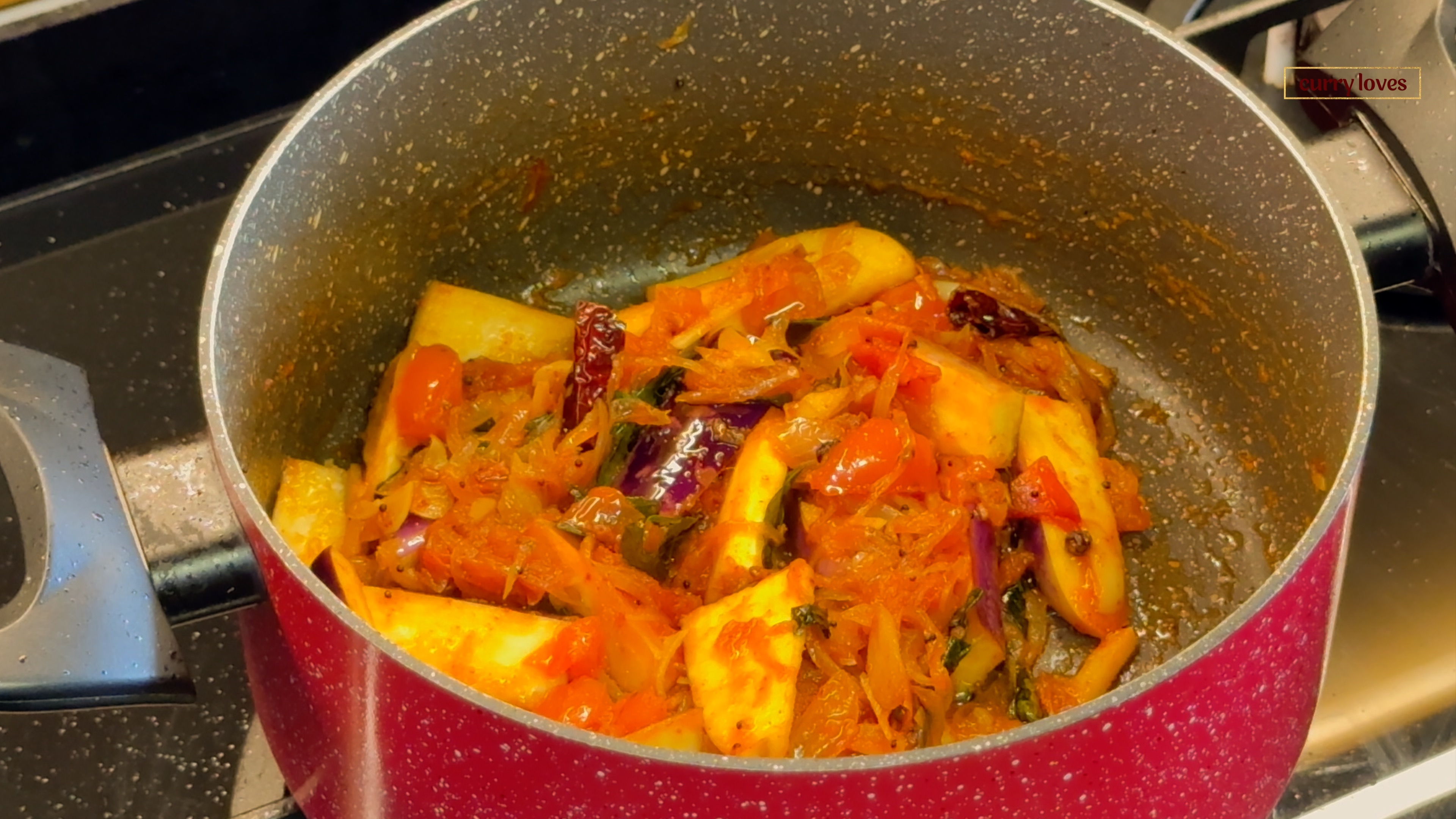 In this recipe, I am using homemade curry masala powder. However, you can easily substitute it with store-bought curry masala or any homemade version you prefer. Another fantastic option is to use fish masala powder, which complements the ingredients beautifully to the Brinjal Pachadi