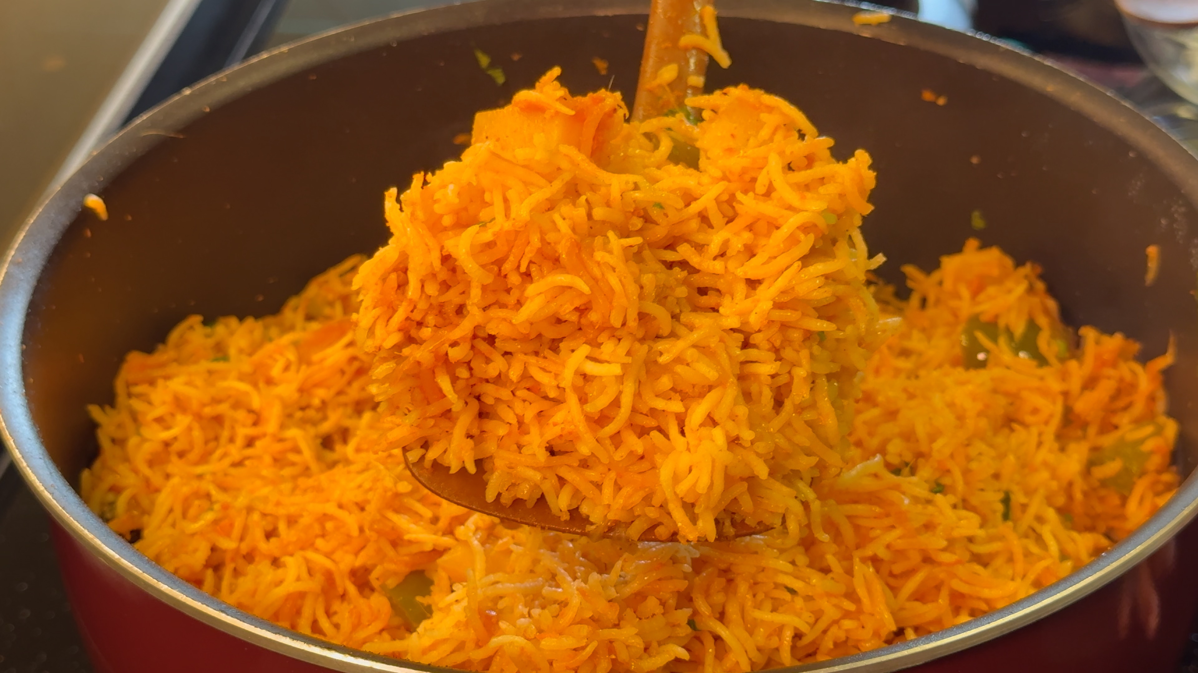 As I have always said in the method of cooking pulao or biryanis, it’s a good practice to place a tawa (a flat pan) on top of your burner, followed by the pot you are cooking in. This technique helps to distribute the heat evenly and ensures that the rice does not sit at the bottom of the pot, preventing it from burning. By creating this buffer, you can achieve long, grainy rice that is perfectly cooked and fluffy. This little tip can make a significant difference in the final texture of your pulao or biryani!