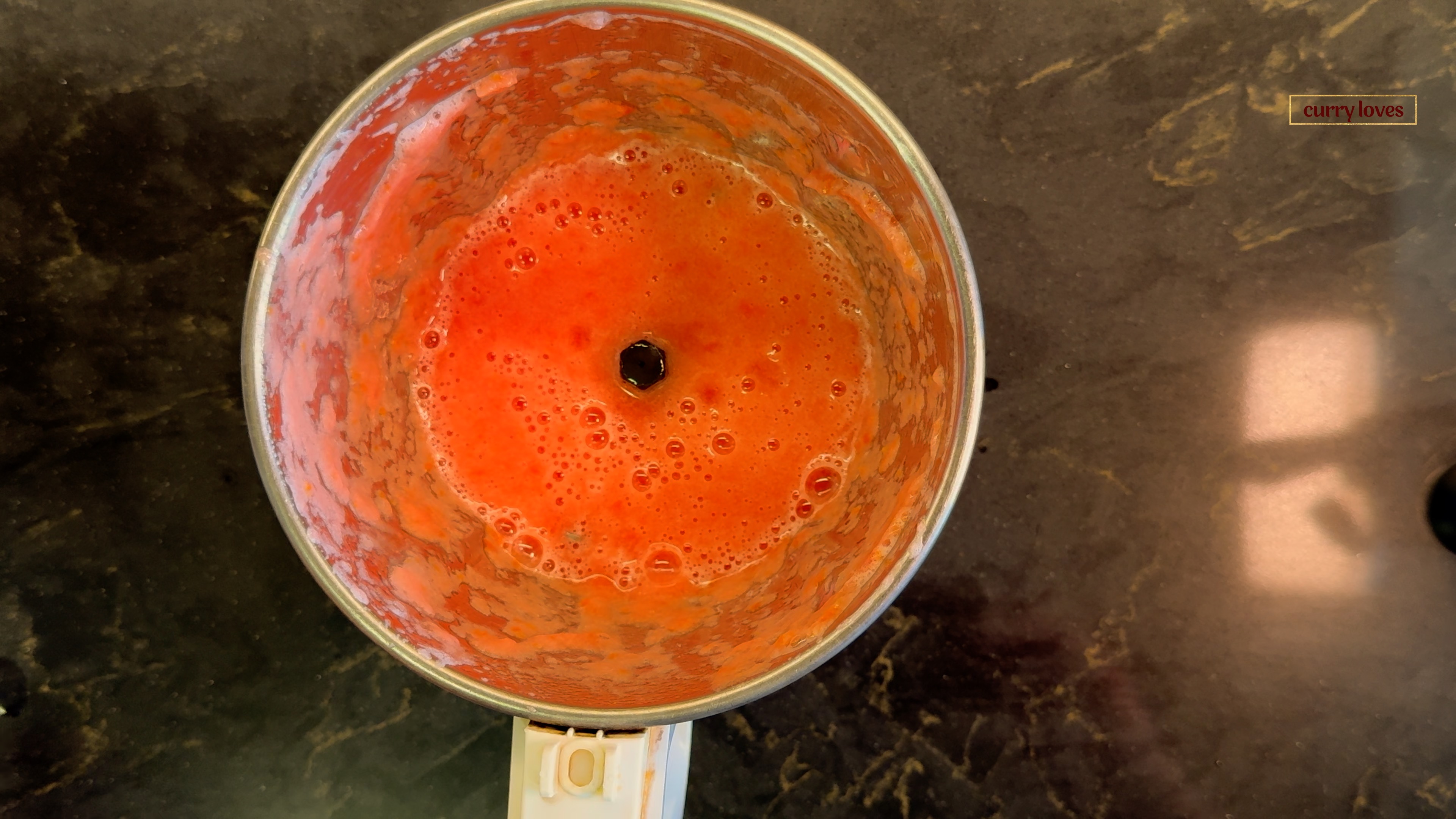 In another clean mixer jar, blend the tomatoes into a smooth paste without adding water. Set aside.