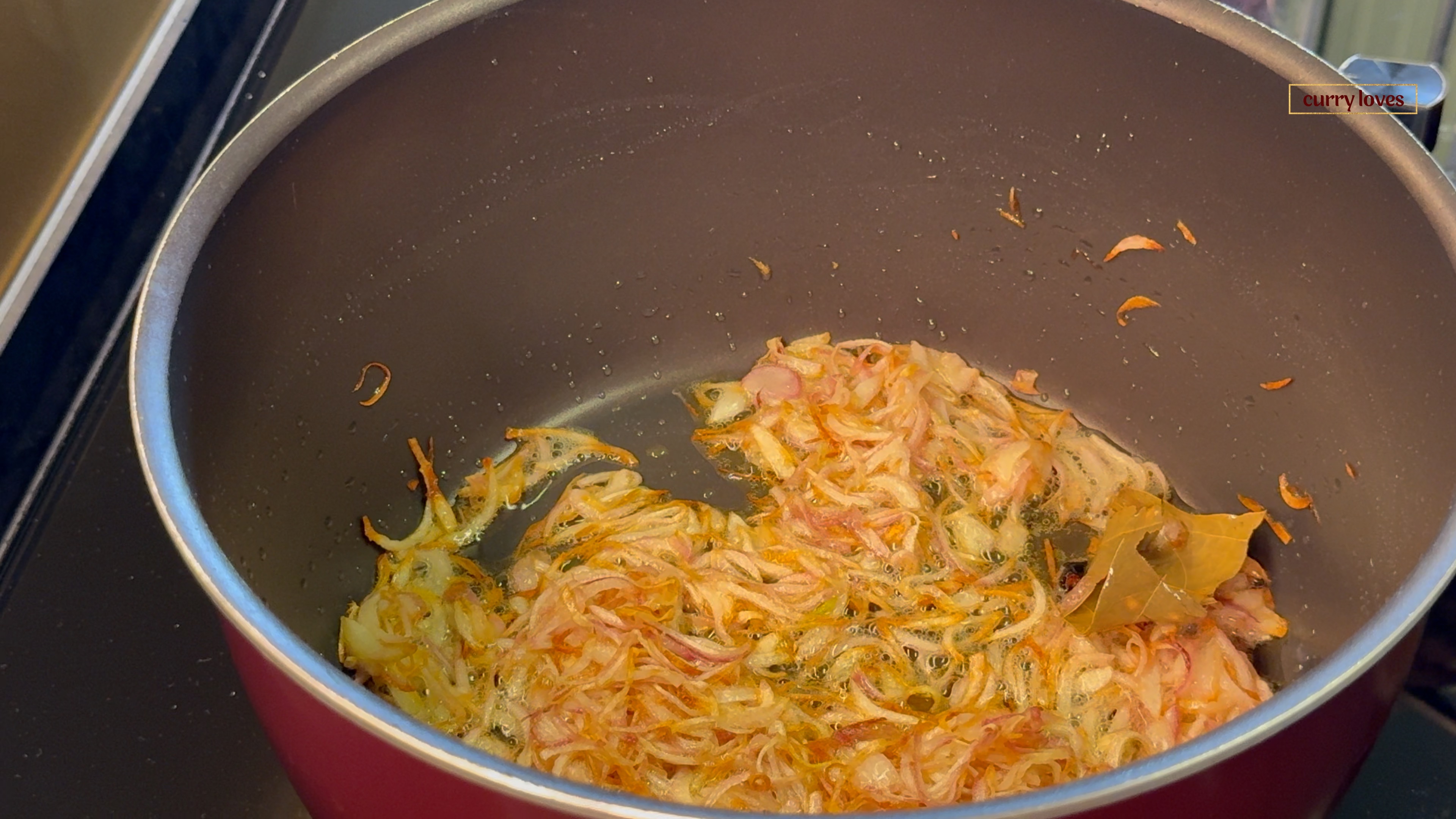 Heat oil and ghee in a pot. Once hot, add the cinnamon, cardamom, and star anise. Sauté until fragrant.
