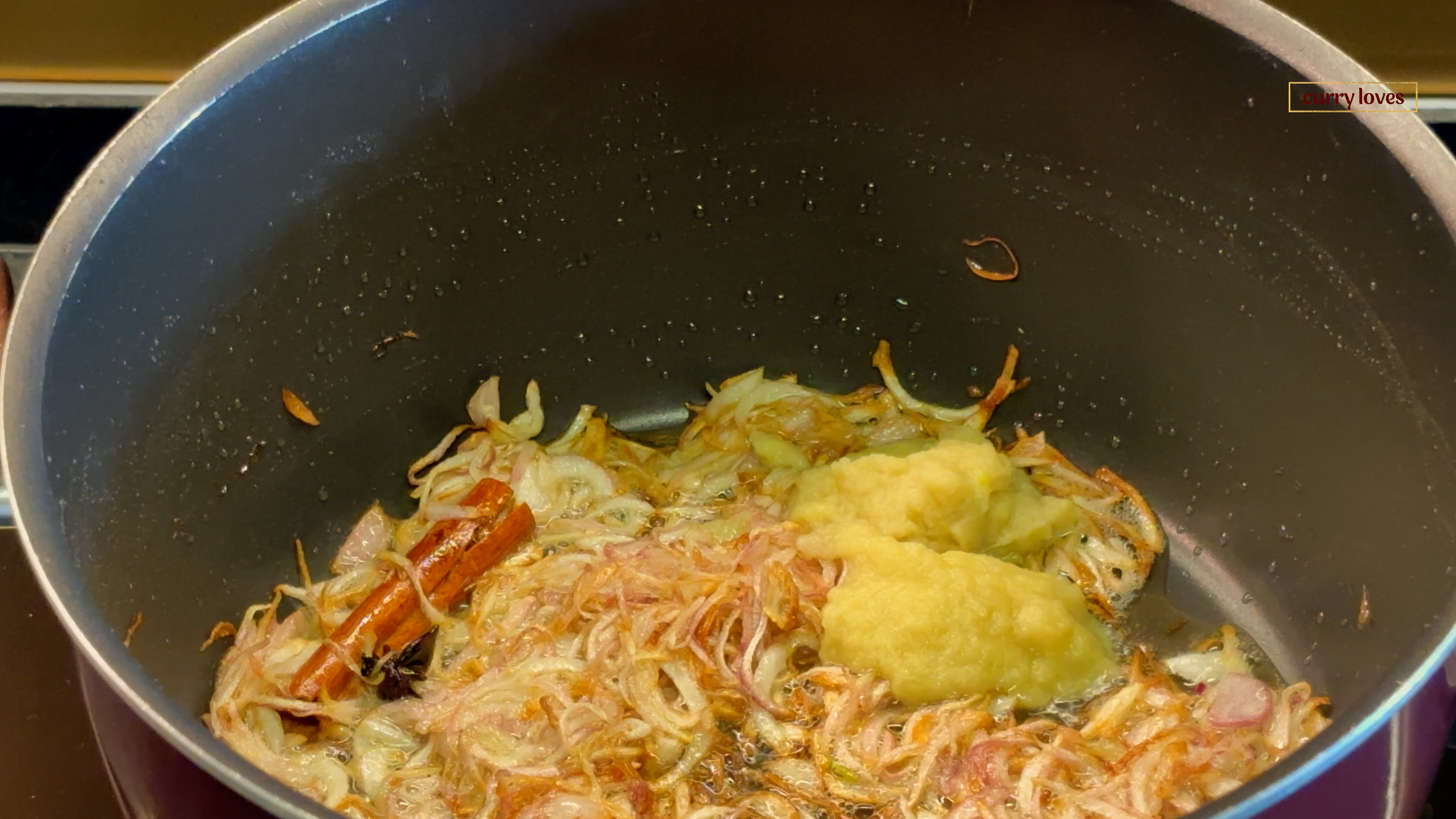 Add the ginger-garlic paste and sauté on low flame for 5 minutes.