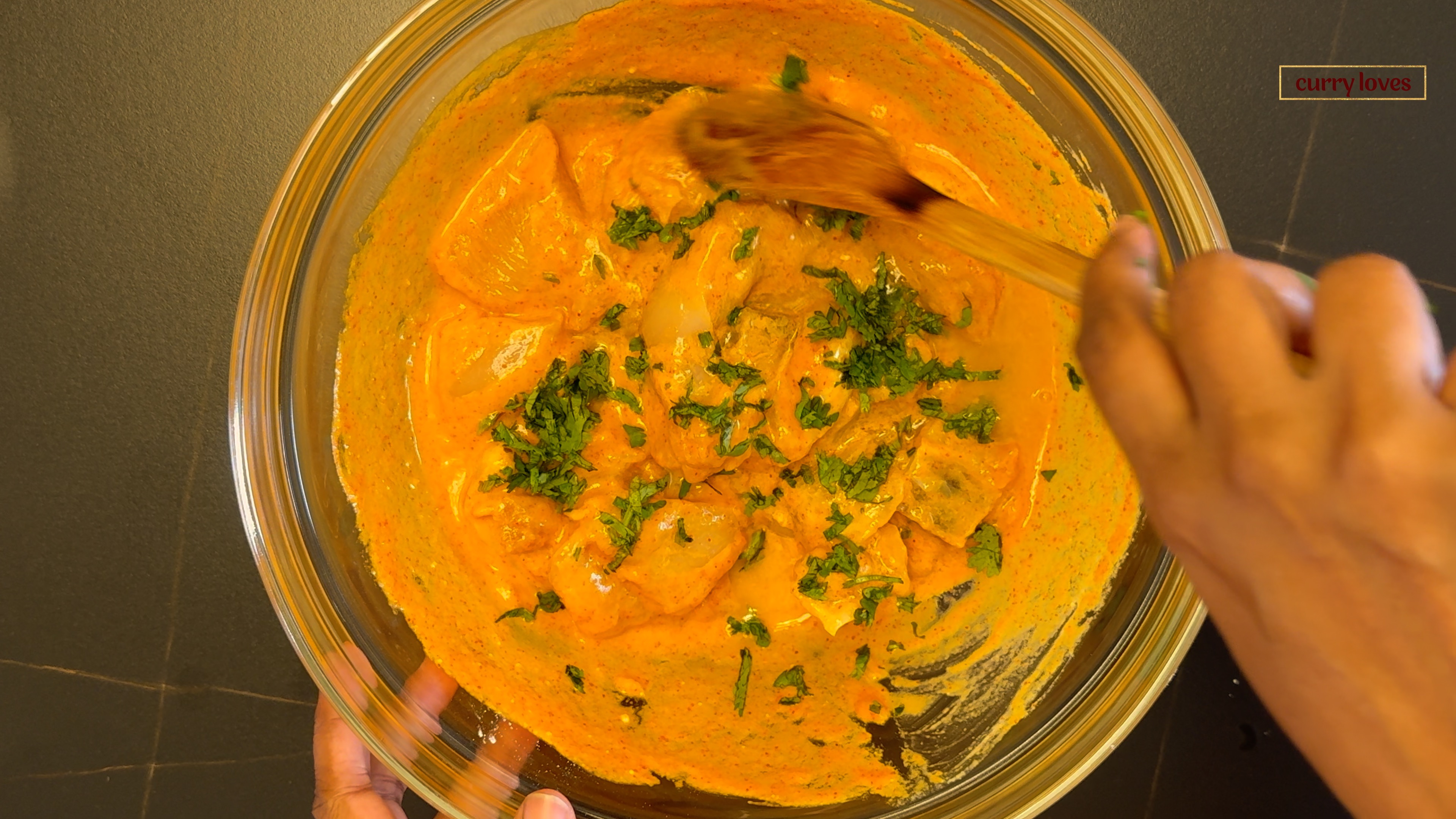 Finally, add the chopped coriander leaves and give it one last mix. Set aside to marinate for 30 minutes.