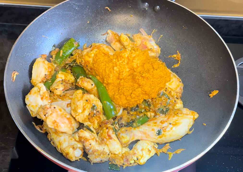 Add the prepared ground paste to the chicken and cook on high flame for another 5 minutes.