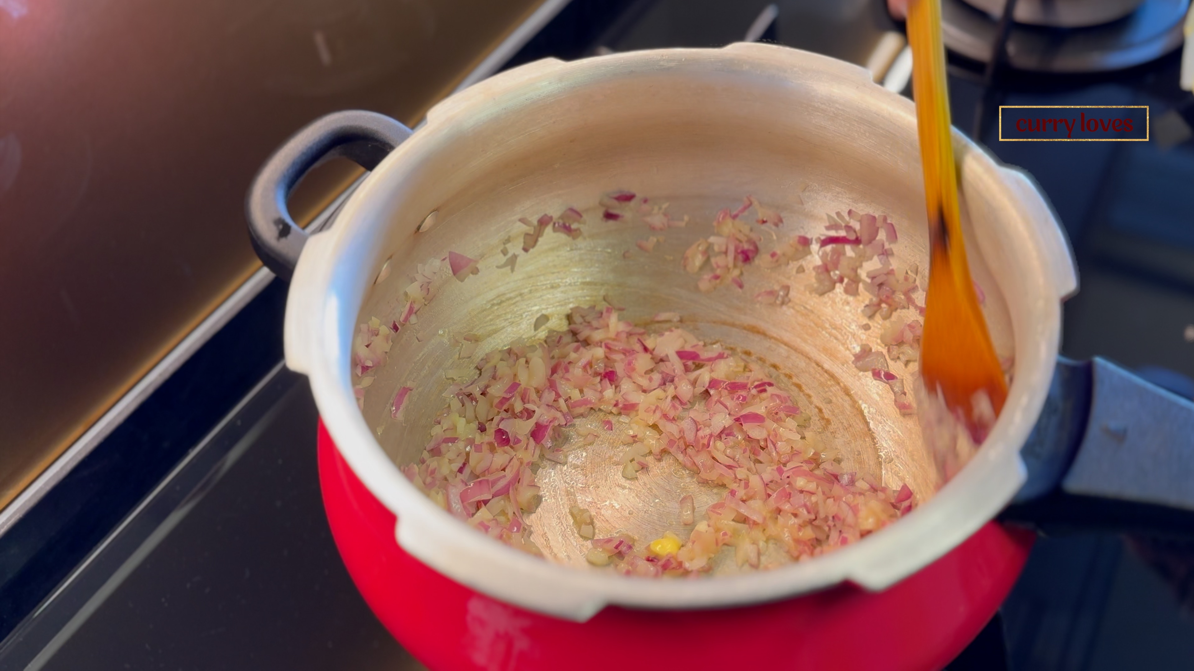 Close the lid of the pressure cooker, place the weight, and cook on medium flame until 2 whistles.