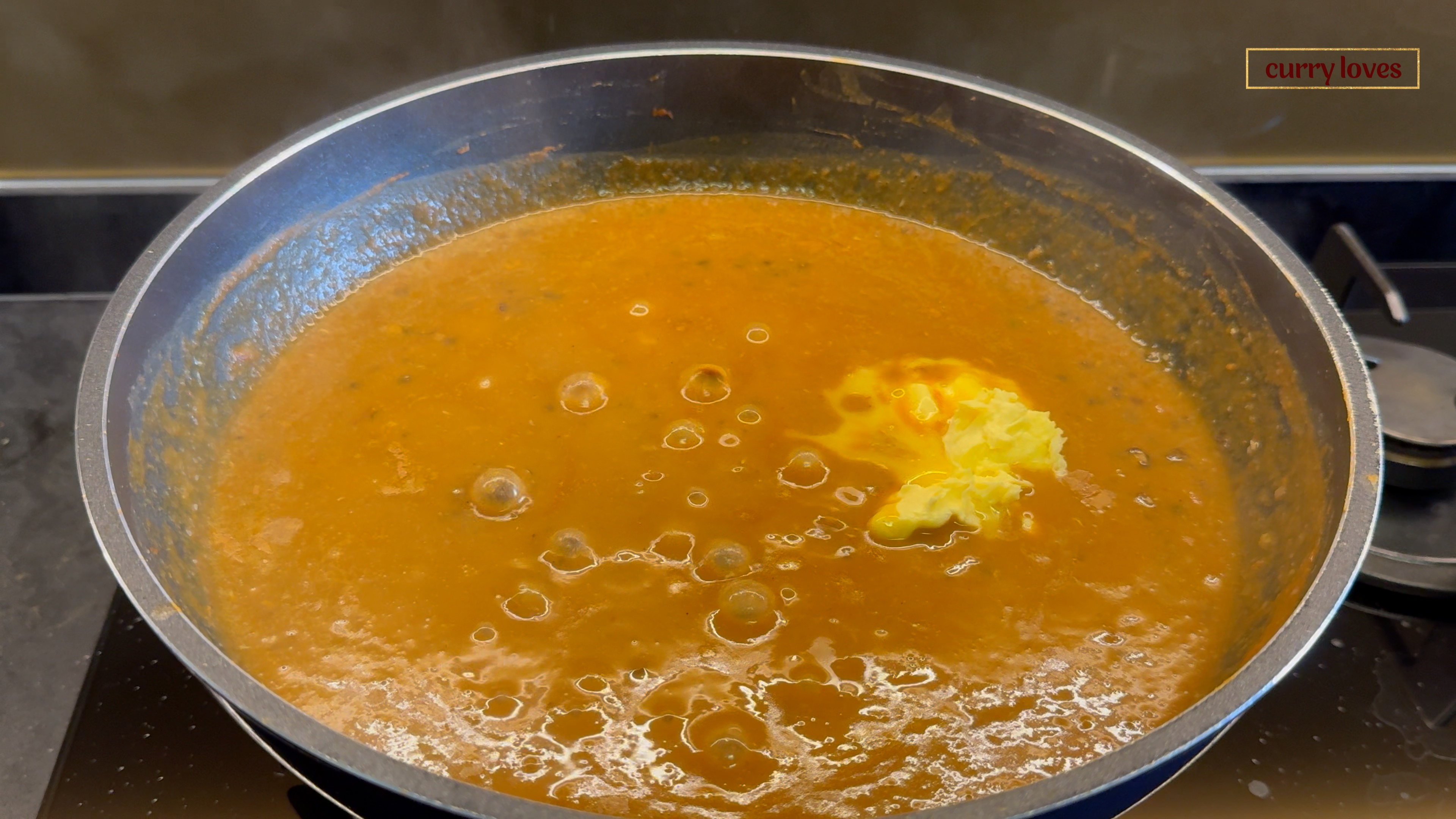 Stir in 1 tsp Kashmiri chili powder, 1/2 tsp coriander powder, and 1/4 tsp garam masala powder. Cook until the ghee separates from the masala.
