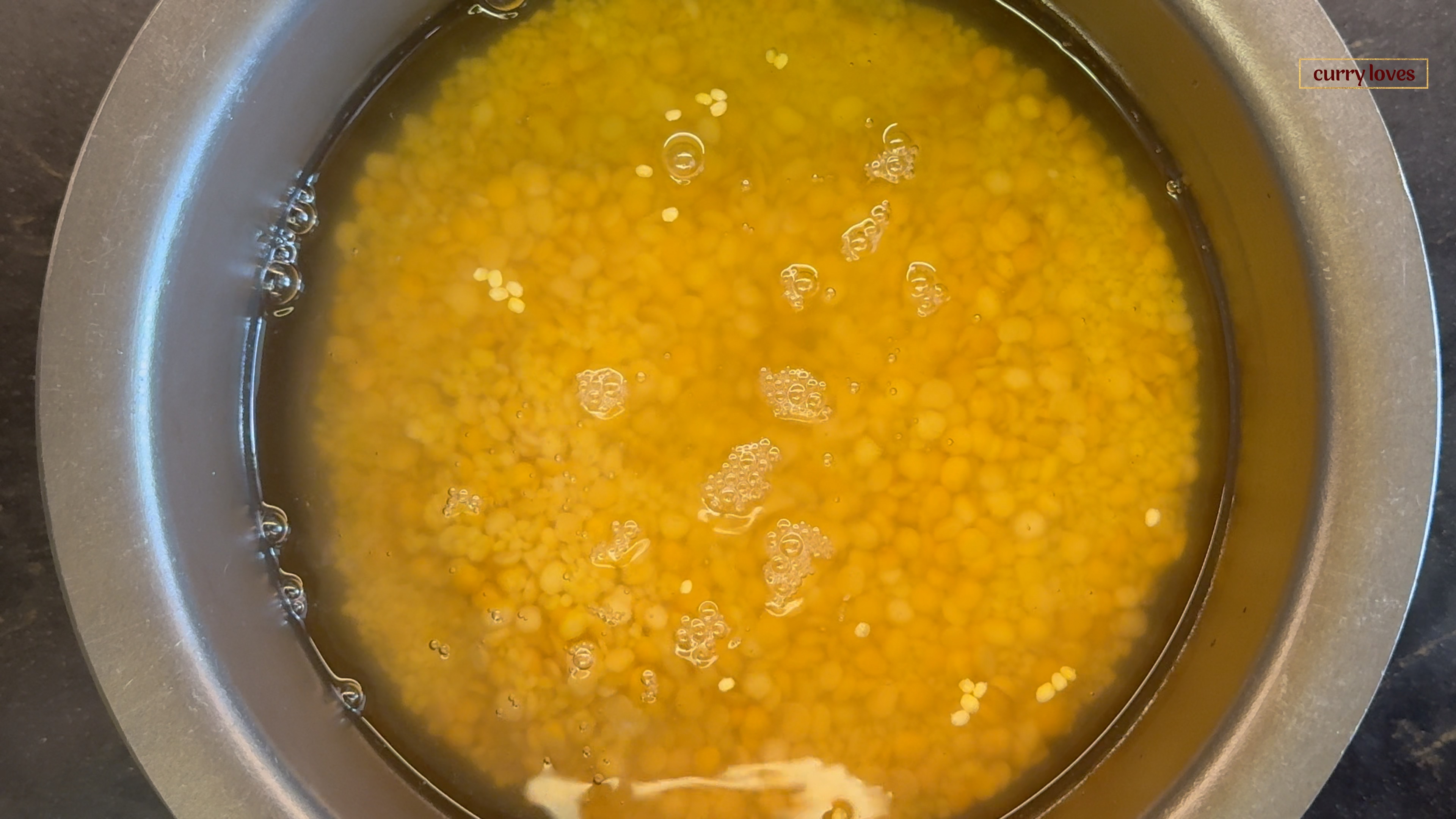 First, rinse and soak the toor dal, chana dal, and mung dal for 3 hours.