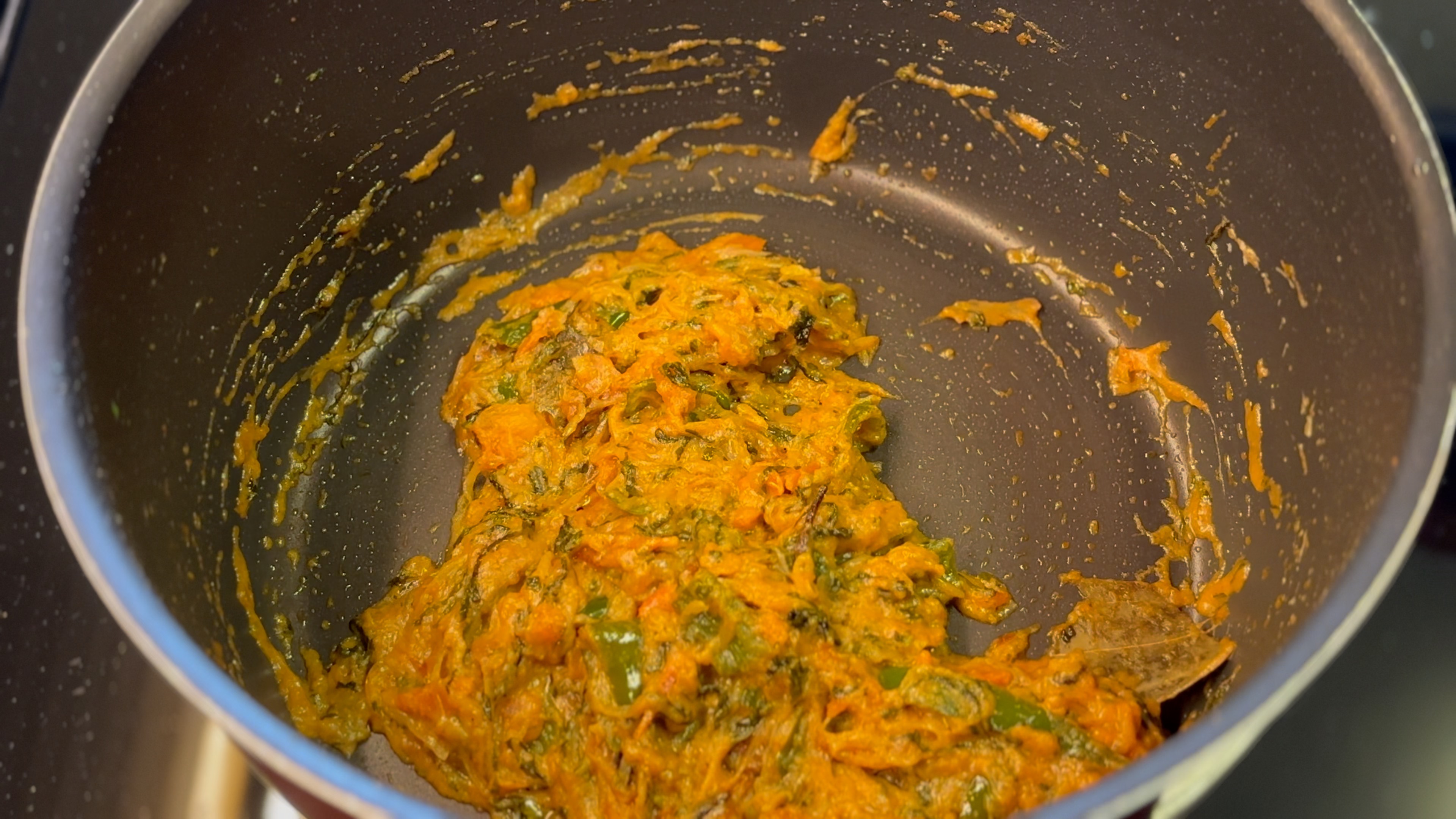 On low flame, cook the masala for 7-8 minutes until the raw smell dissipates.