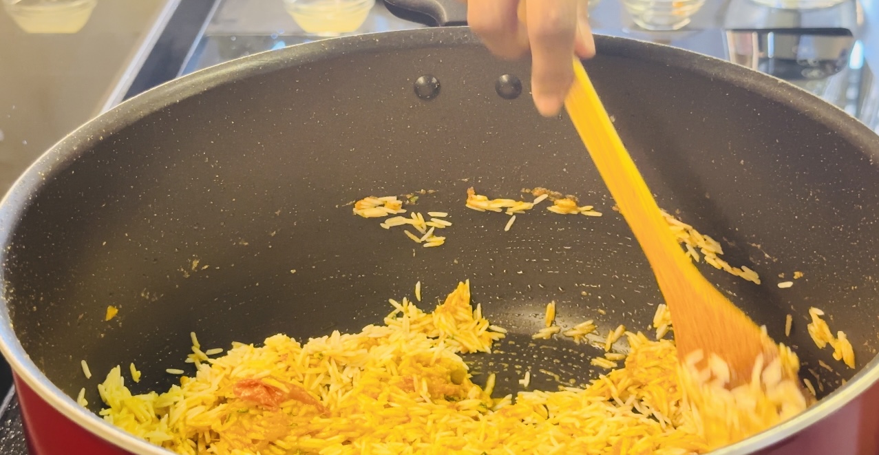 - Place a tawa under the briyani pot to prevent the rice from sticking and burning at the bottom.