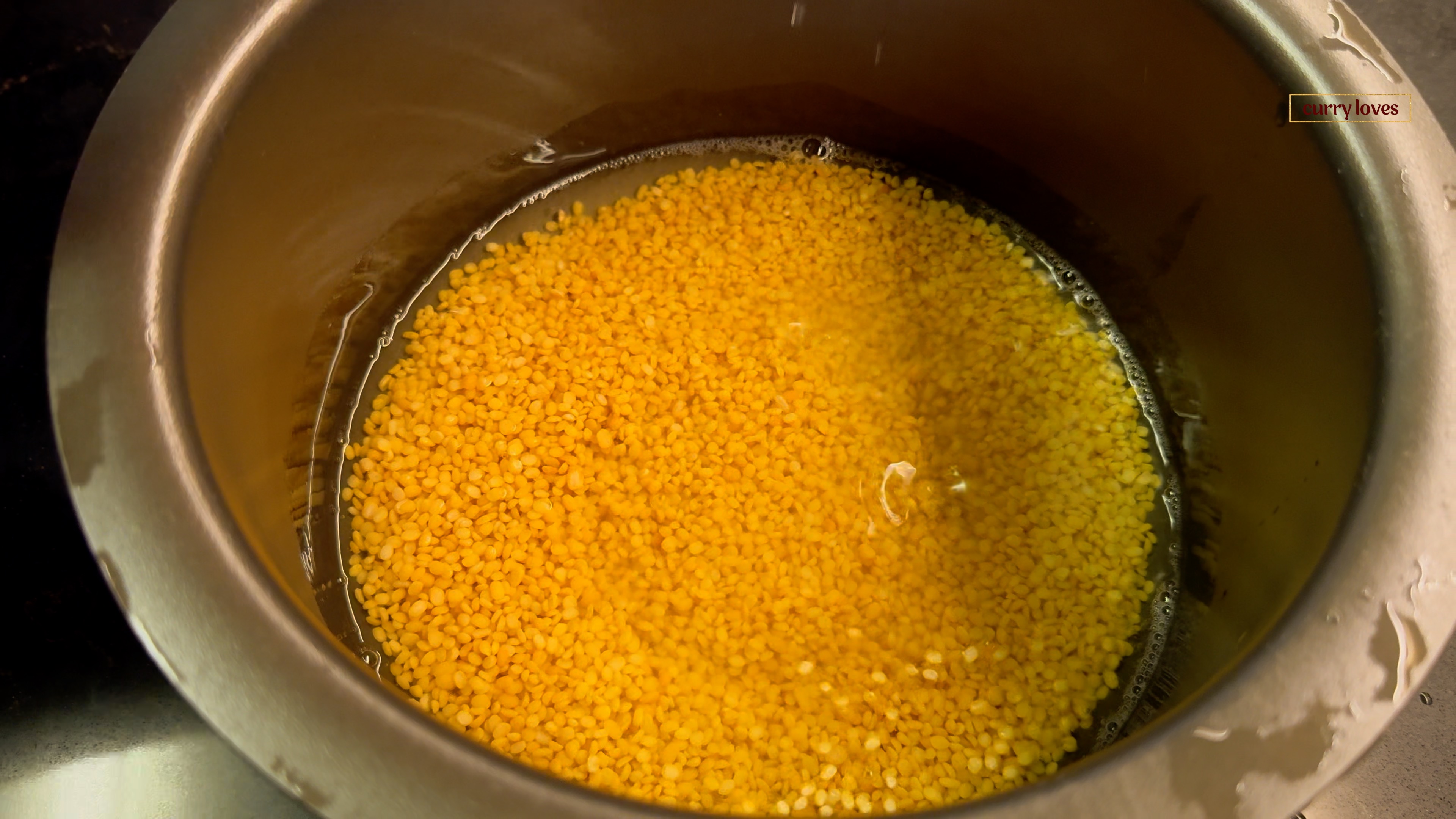 Rinse and soak - Rinse the moong dal three times and then soak it in water for 2 hours.