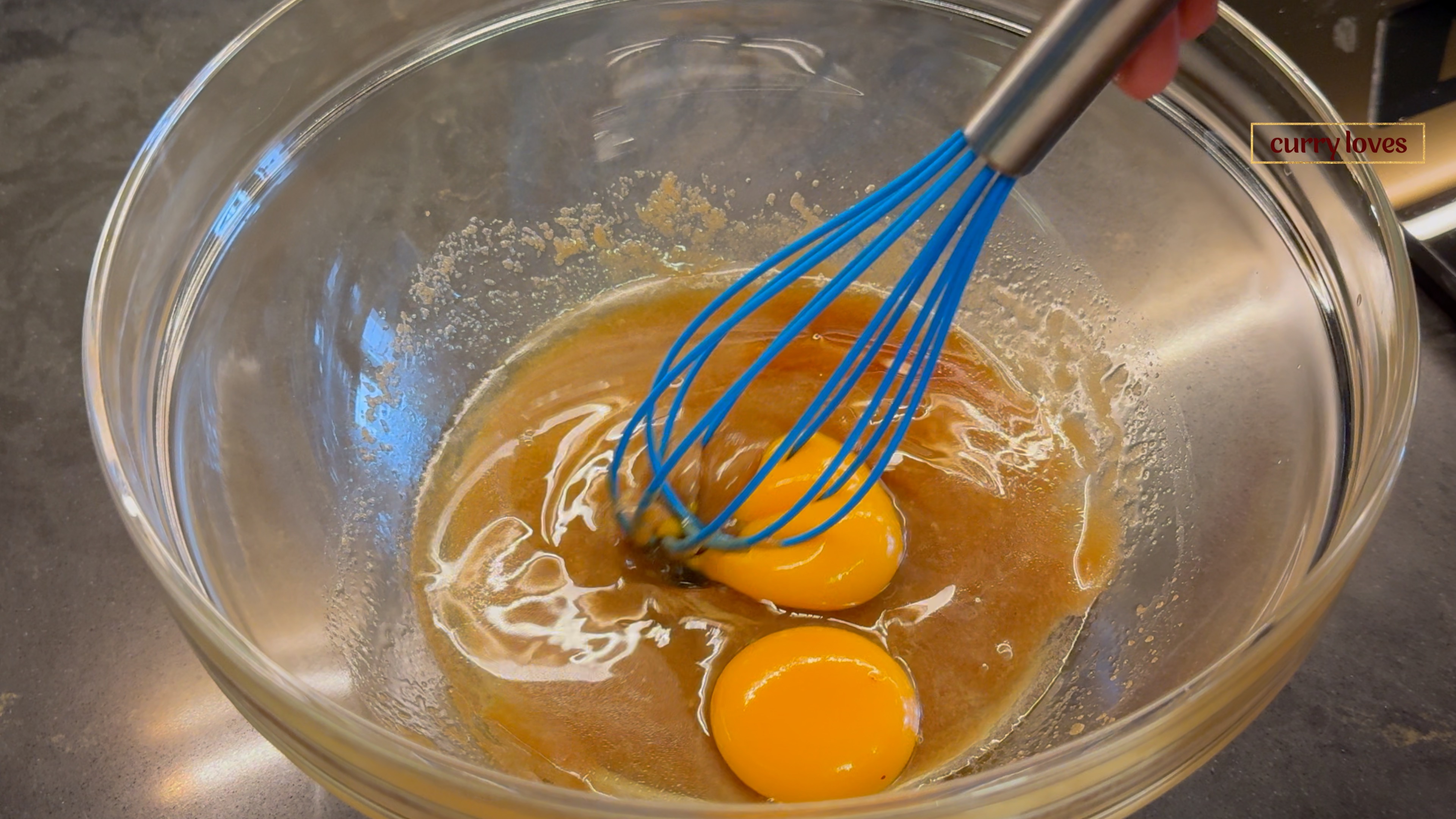 In a medium-sized mixing bowl, whisk together the melted butter and brown sugar until smooth and creamy.