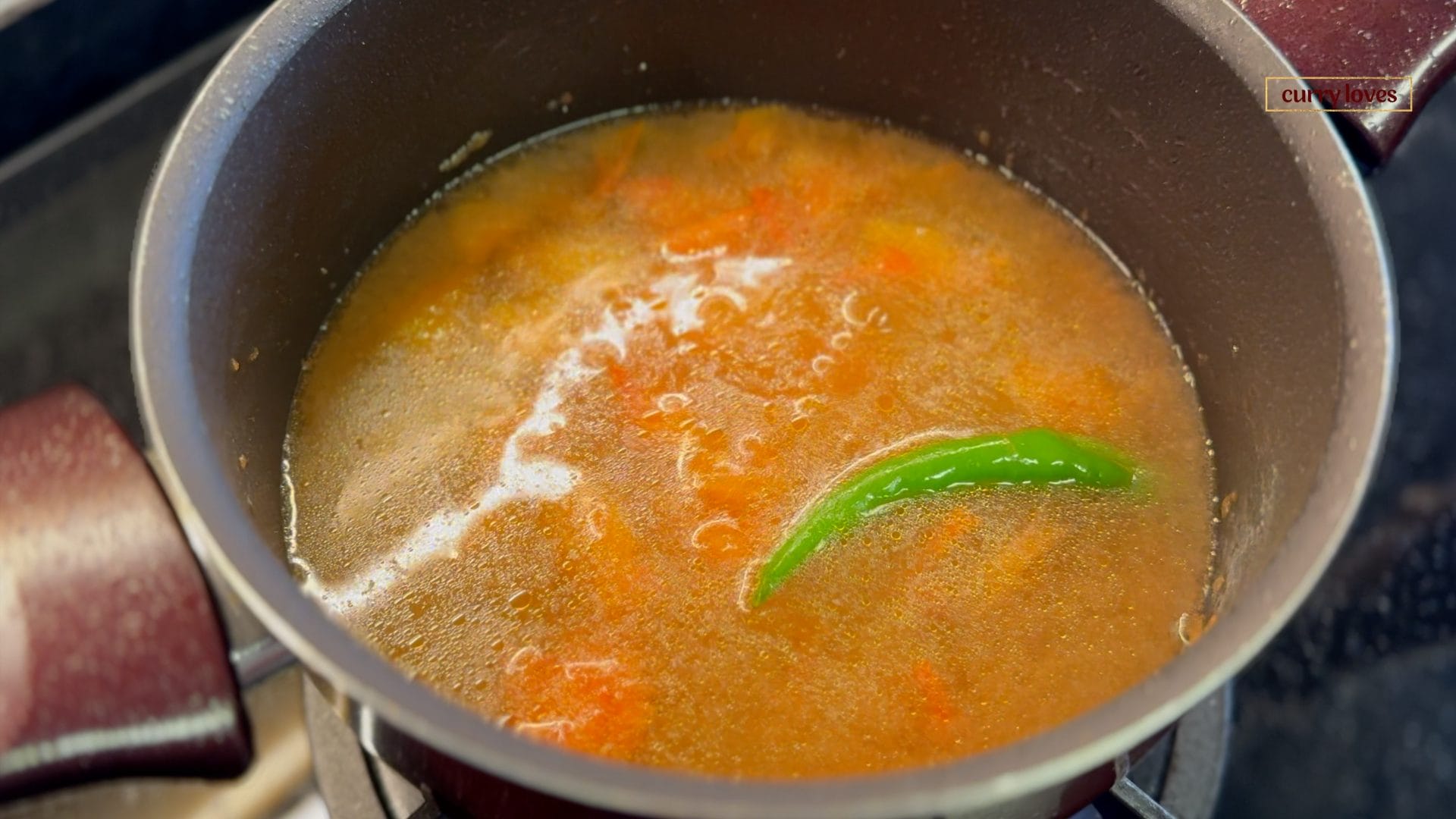 Stir in the rasam powder and allow the rasam to boil gently on low flame for about 5 minutes.