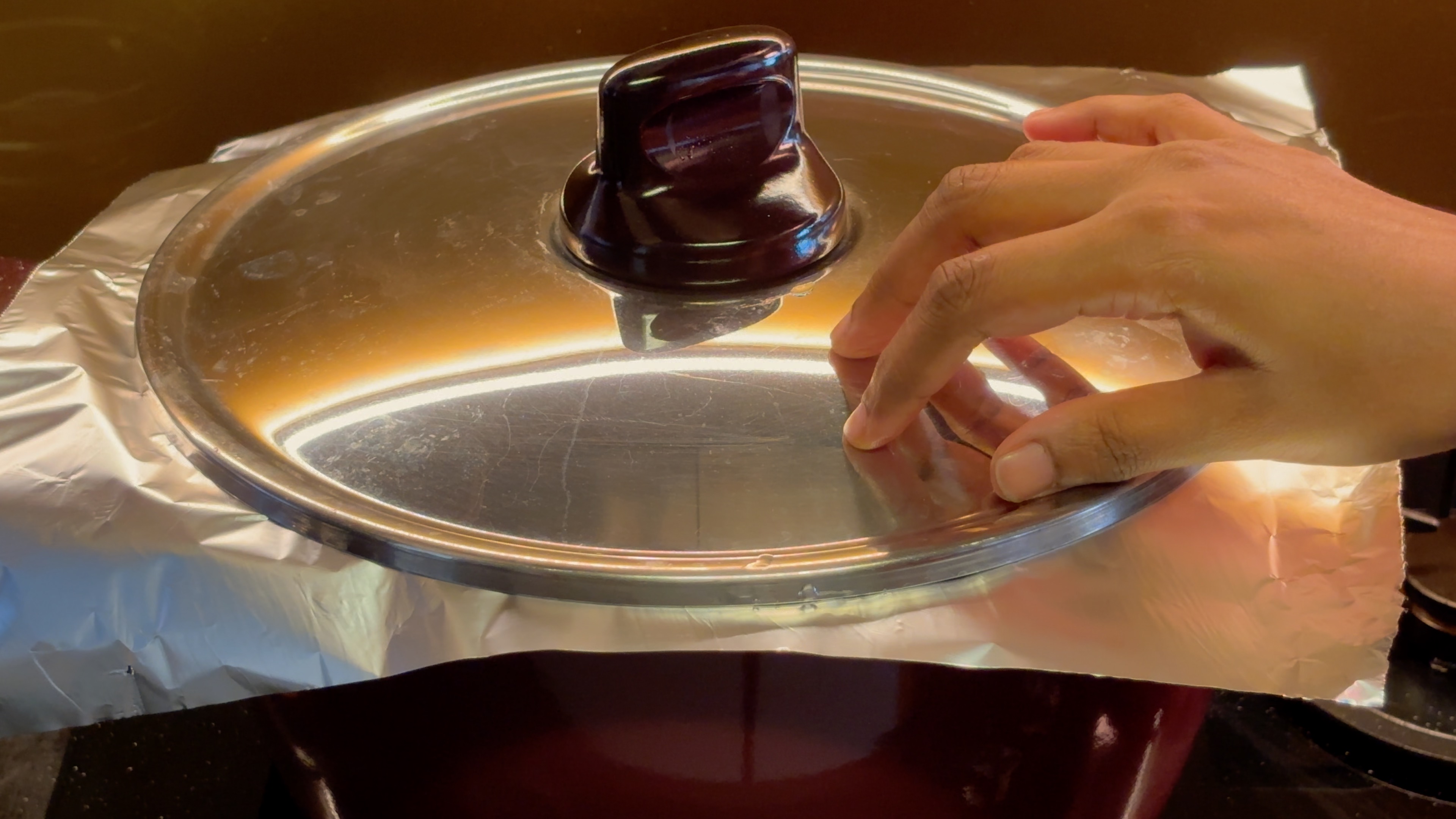 Cover the pot with aluminum foil followed by the lid. Cook on low flame for 20 minutes.