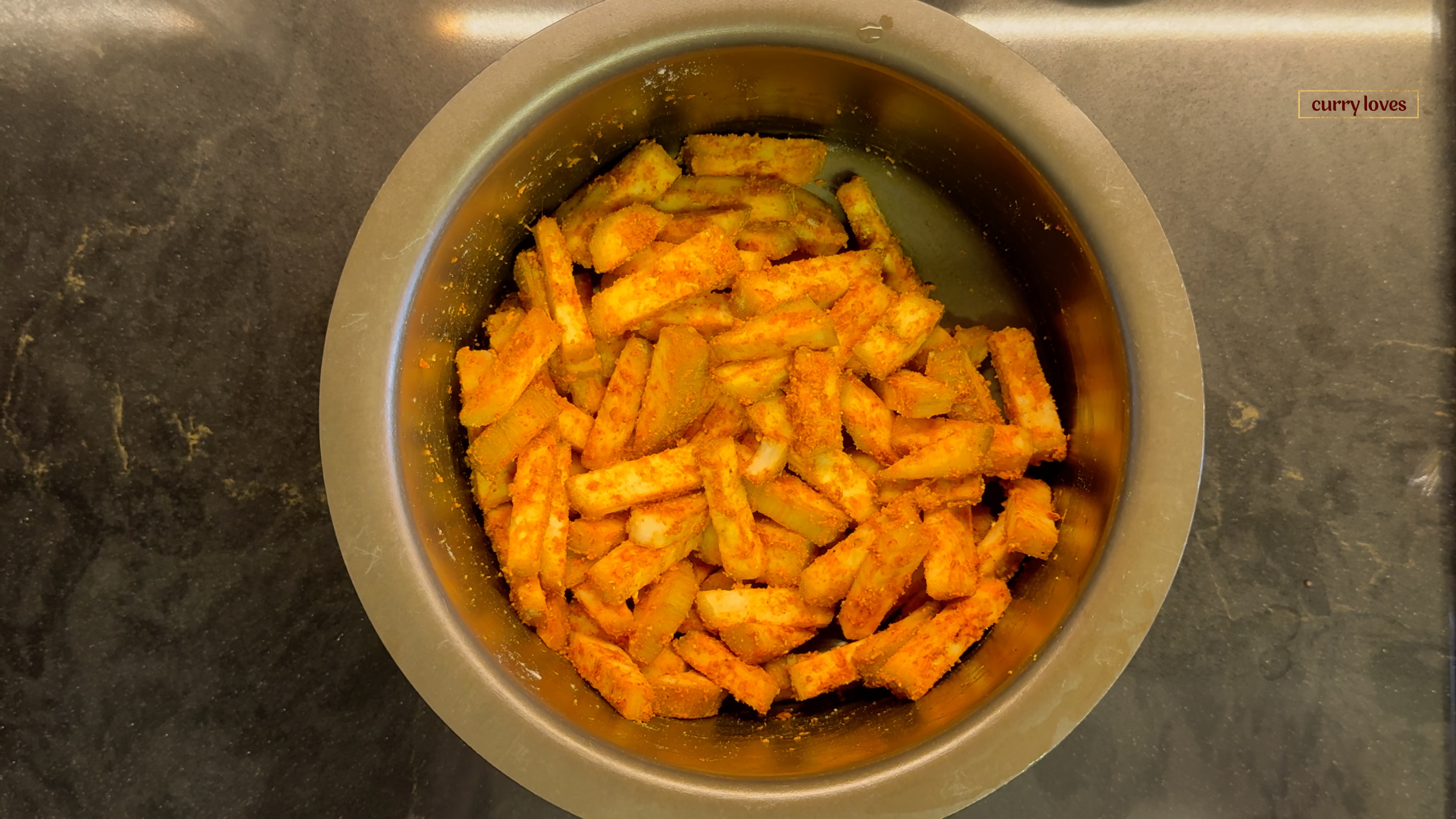 Instructions on how to make the Vazhakkai Fry with step-by-step photos