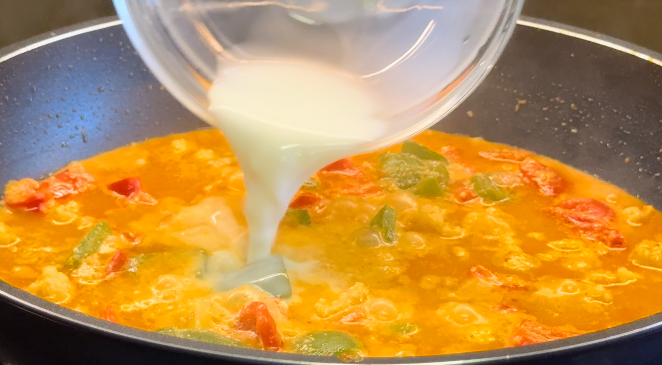 Pour in the milk and cook for a further 1-2 minutes over medium heat.